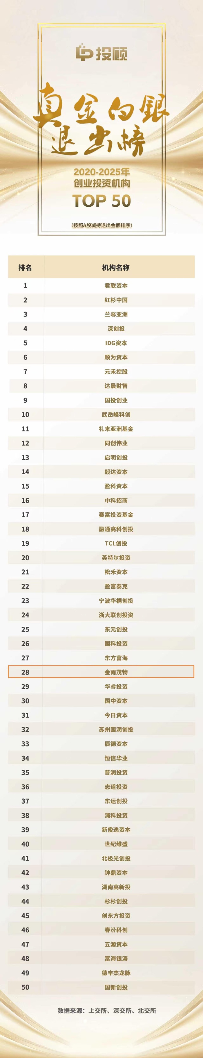 附2:真金白银退出榜2020-2025年创业投资机构TOP 50
