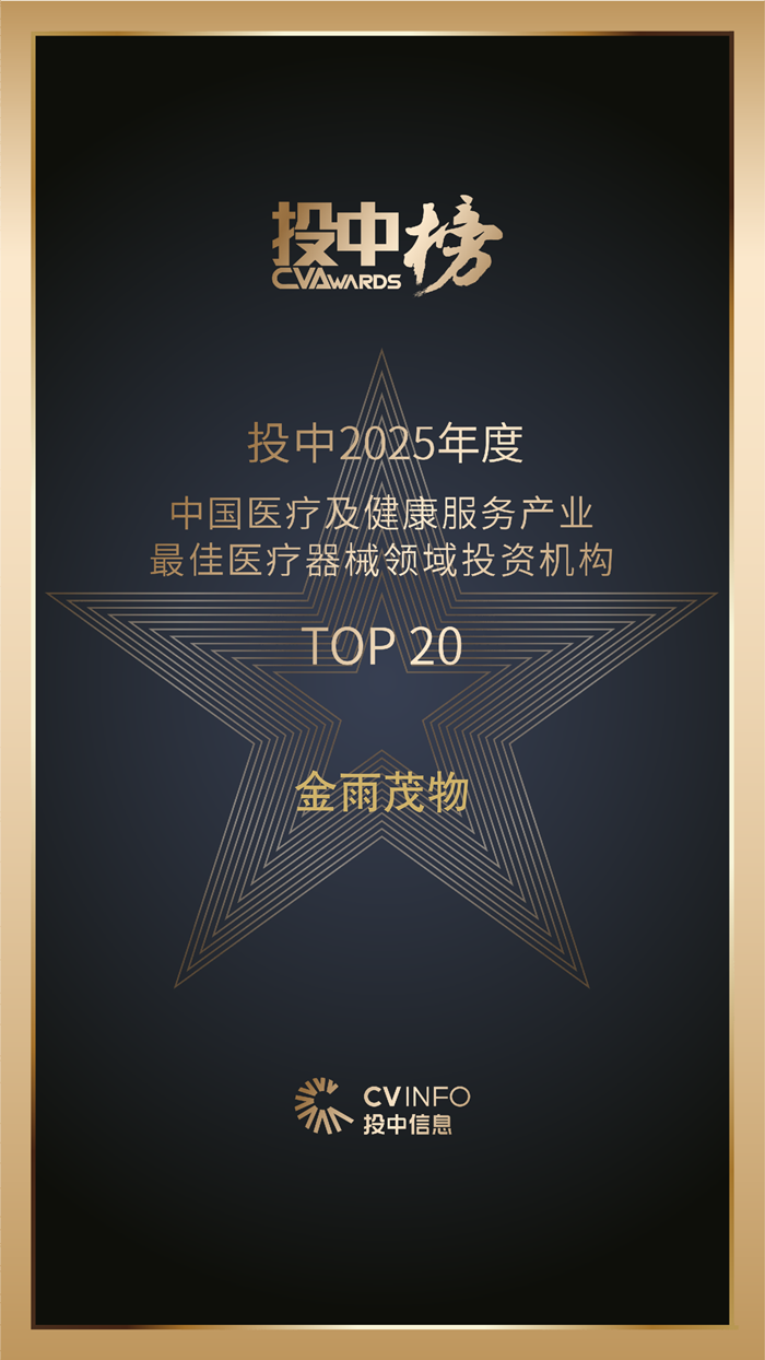 4月24日,2025年度投中榜发布,金雨茂物凭借在硬科技投资、产业赋能、退出管理等方面的卓越表现,荣登“中国最佳创业投资机构TOP 50”、“中国最佳中资创业投资机构TOP 50”、“中国医疗及健康服务产业最佳医疗器械领域投资机构TOP 20”,已投企业长飞先进半导体获评“中国半导体与集成电路产业最佳投资案例TOP 10”、极佳视界获评“中国人工智能与大数据产业最佳投资案例TOP 10”、星能玄光获评“中国碳中和产业最佳投资案例TOP 10”。
