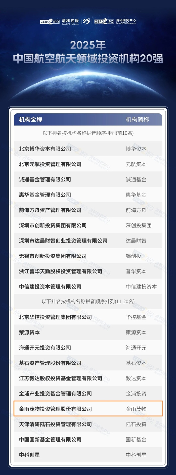 附:2025年中国航空航天领域投资机构20强