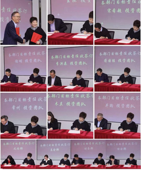 会上,张敏总裁与各行业组、各部门签订了绩效任务分解责任状。