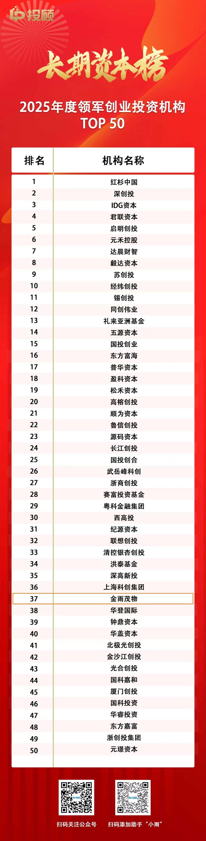 附1:2025年度领军创业投资机构TOP 50
