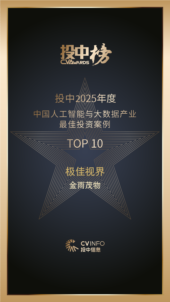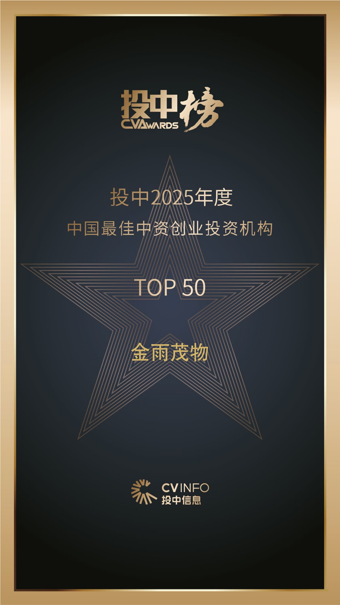 4月24日,2025年度投中榜发布,金雨茂物凭借在硬科技投资、产业赋能、退出管理等方面的卓越表现,荣登“中国最佳创业投资机构TOP 50”、“中国最佳中资创业投资机构TOP 50”、“中国医疗及健康服务产业最佳医疗器械领域投资机构TOP 20”,已投企业长飞先进半导体获评“中国半导体与集成电路产业最佳投资案例TOP 10”、极佳视界获评“中国人工智能与大数据产业最佳投资案例TOP 10”、星能玄光获评“中国碳中和产业最佳投资案例TOP 10”。